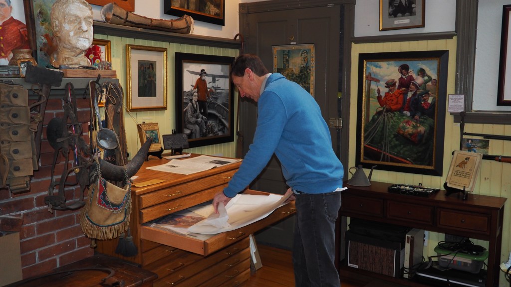 There are two other painters I want to mention in this article, Frank E. Schoonover (1877-1972) and Maxfield Parish (1870-1966), both took on and expanded on Pyle’s philosophy. Schoonover, who once traveled on a 1,200-mile trip through Canada and Alaska, sometimes by dog sled, was immersed in the imagery of the wild and untamed. Frank was also one of the lucky students of Howard’s to study with him in Chadds Ford, PA. Again, it was Pyle who help this illustrator get commissioned work. Schoonover’s studios are located on Rodney Street in Wilmington and are still in use today. John R. Schoonover, Frank’s grandson maintains the historic property and does art restoration, consulting and is the source for everything about the Pyle Illustrators. I sat down with John and we discussed what illustration arts is about and how it is on a comeback. “Pyle though was underestimated in the art market”, John stated. “He just missed his time, he was a man behind the scenes, today, illustration art is all about N.C. Wyeth and Norman Rockwell.” I recommend that you take a short ride to the Rodney Street studios in Wilmington and see some fantastic Schoonover art and ephemera. John’s always happy to show visitors and scholars around.